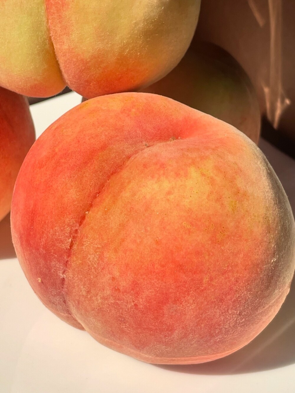 복숭아 품종마다 보여드릴 수 있는 시기가 짧아 아쉽지만 이 시기에 진하게 이 매력에 포옥 빠져 풍성하게 즐겨주신다면 아주 좋을 것 같아요. 과육이 희고 단단하며 결이 곱와 씹을수록 여리여리 은은한 향과 입안 가득 고급스럽게 풍성한 향긋함을 전달해 주니 이 행복을 어찌 말로 표현하나요.